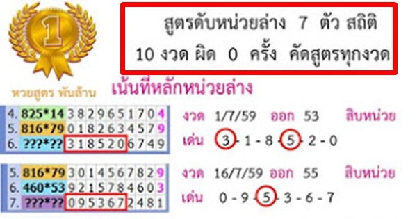 ถูก 10 งวดติด!!! สูตรดับหน่วยล่าง 7 ตัว (คัดสูตรทุกงวด)